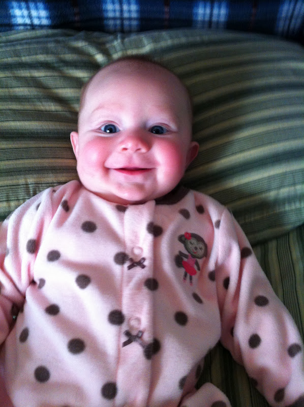 Anyone that knows me, knows that I am not a morning person...at all! I have sometimes told co-workers not to talk to me about anything important until after 10! BUT with this sweet angel in my life now mornings are so much better. Its much easier rolling out of bed seeing this sweet face, its much easier getting through my work days knowing this baby girl is waiting for me to pick her up, its much easier to have a happy heart at home knowing she smiles at me every time I see her. My dreams are a lot sweeter knowing that I just spend the last few minutes of my evening snuggling her, feeding her, watching her drift off to sleep. Basically, life is just so much better with Mallory in it!